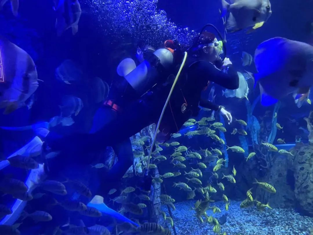 活动中,女职工们进行了潜水体验,她们身着潜水服,由专业教练带领进入潜水区,亲身体验了潜水活动,与海洋生物零距离接触,在一片深蓝中放松心情,是一种别样的减压方式,更能培养参与者勇敢、顽强、协作、谨慎的意志。最后各位潜水者共同协作完成了水下摄影,获得了珍贵的潜水视频。