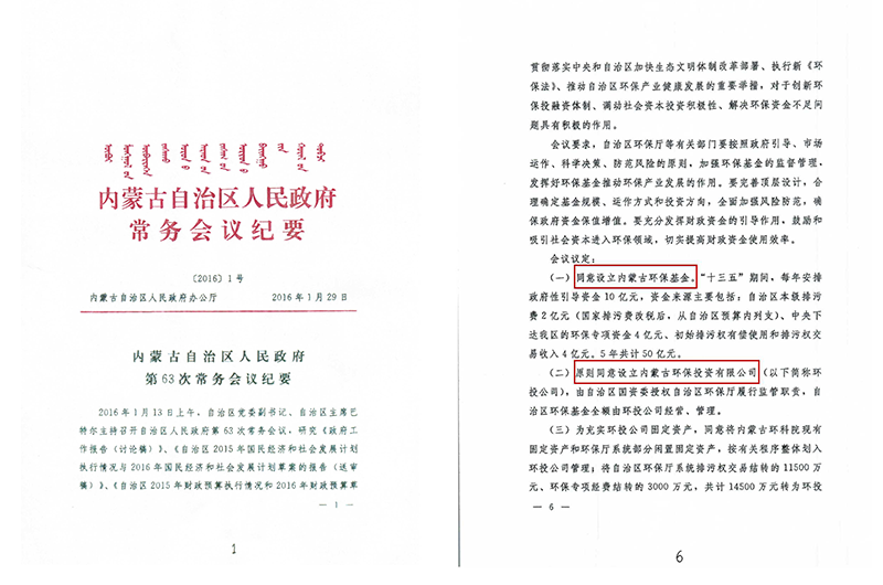 2016年1月13日,自治区人民政府第63次常务会议,决定组建环投集团、设立环保基金