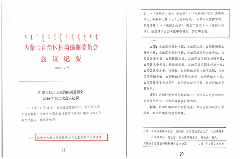 2016年12月26日,自治区编委会2016年第2次会议,批准了环投集团机构设置