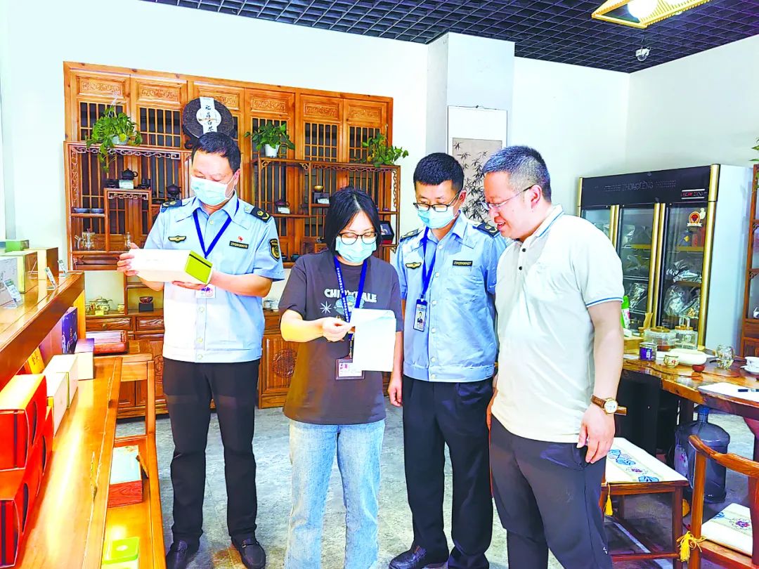 ▲四川省宜宾市翠屏区纪委监委紧盯重要节点,联合相关职能部门成立专项督查组,深入超市、烟酒茶商铺等场所,收集党员干部违规公款吃请、购买高档节礼等问题线索。图为近日该区专项督查组在某茶叶店了解相关情况。李明媚 摄