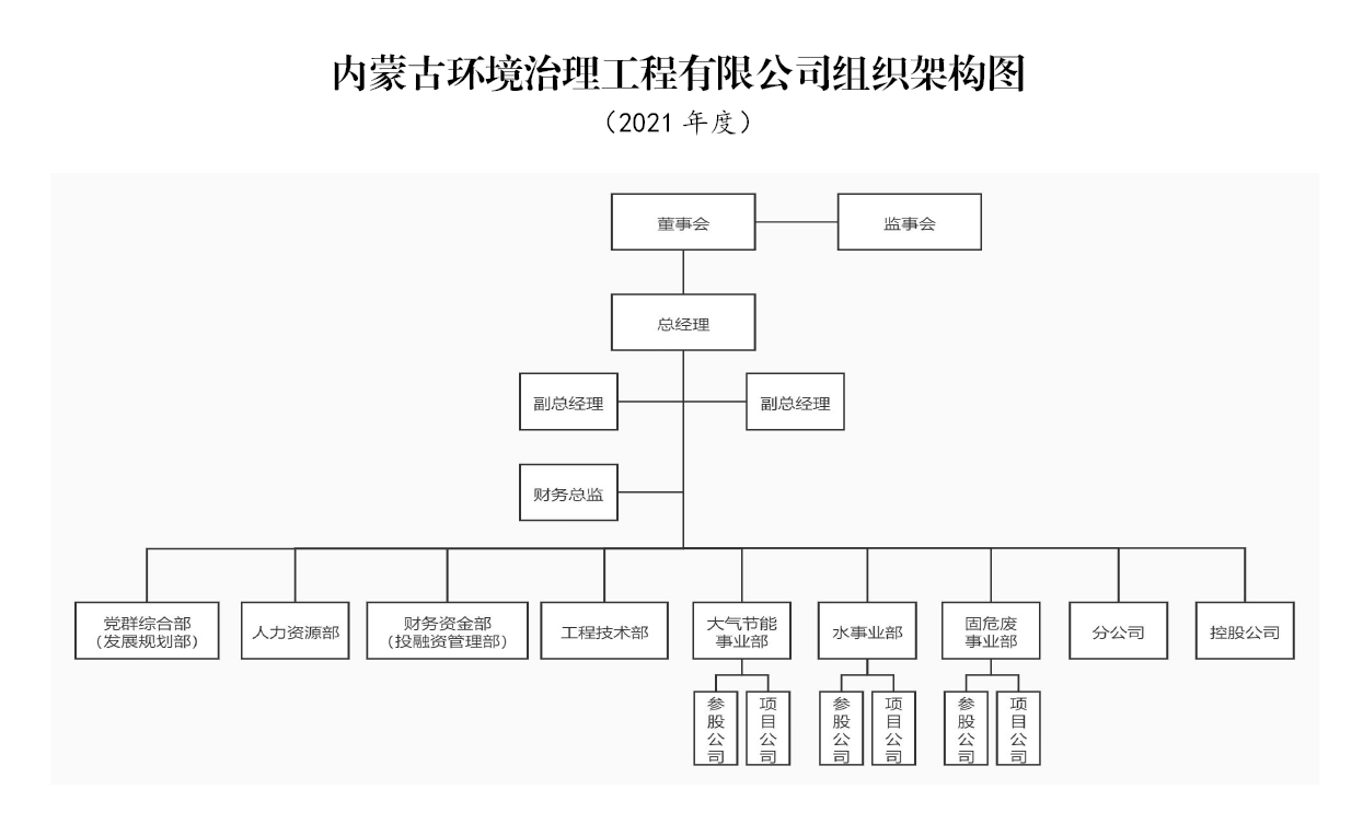 环境治理工程公司成立于2018年1月,注册资本金1亿元,是内蒙古环保投资集团有限公司(简称“内蒙古环投集团”)旗下的全资子公司。截止2020年12月,拥有资产总额23278万元;公司设有4个职能部门、3个事业部和11家控参股公司;各类专业技术人员56人。